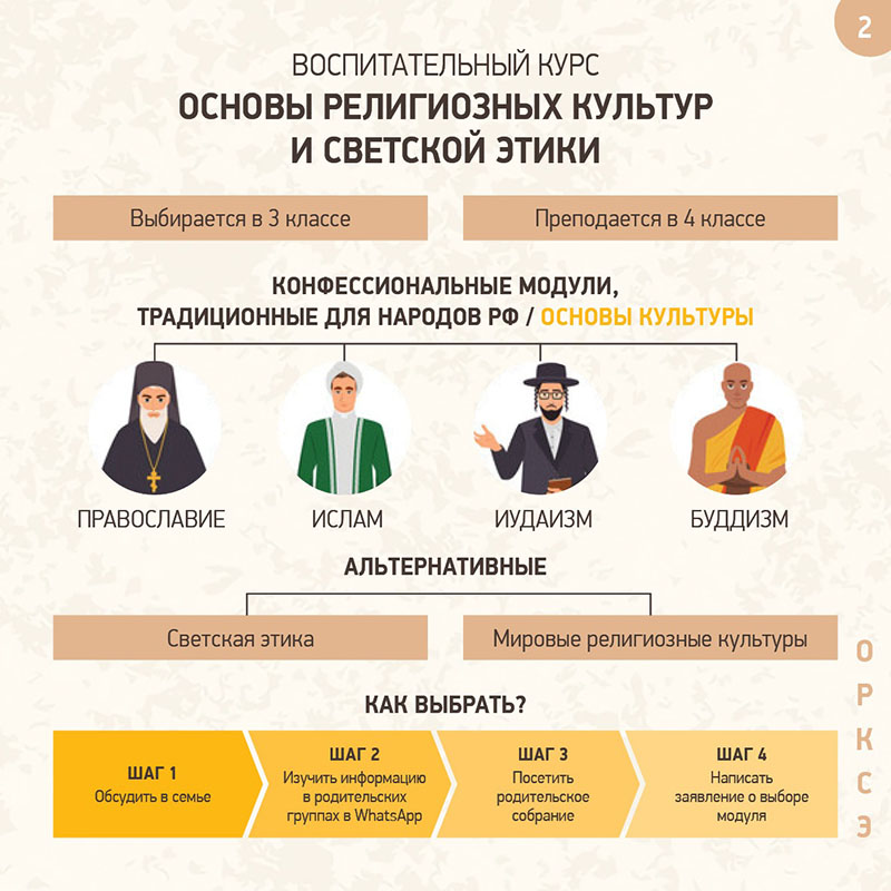 Родителям будущих 4-классников предстоит сделать выбор модуля обязательного учебного курса под названием «Основы религиозных культур и светской этики» или сокращенно ОРКСЭ.