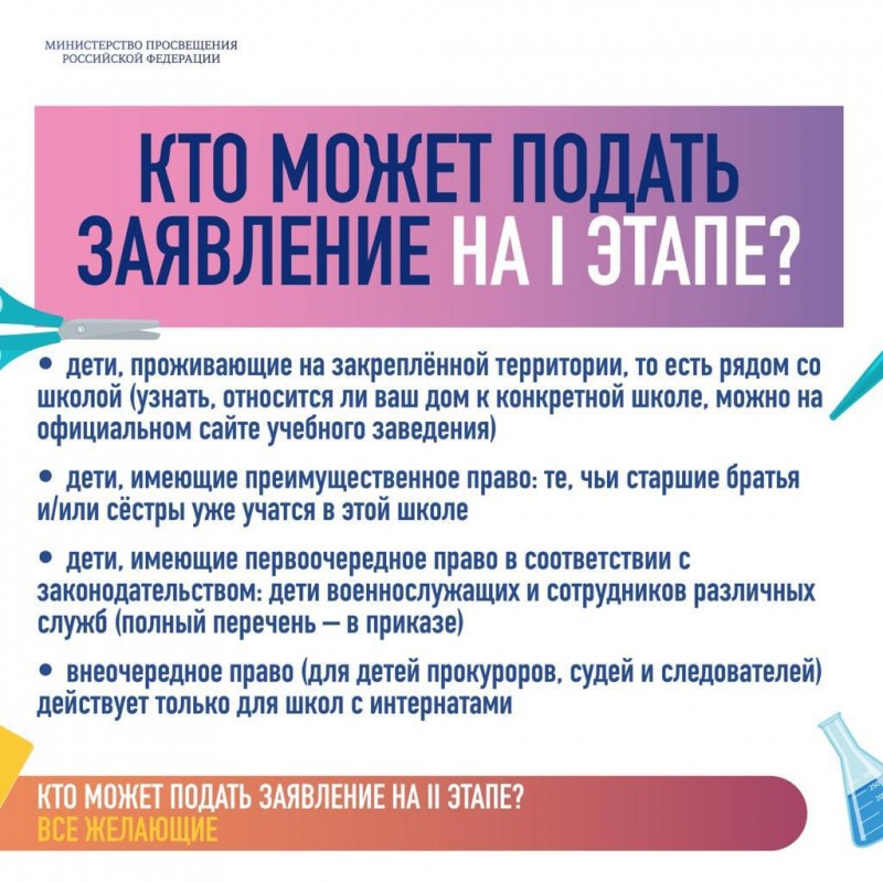 Прием документов для зачисления детей в первый класс осуществляется в два этапа: