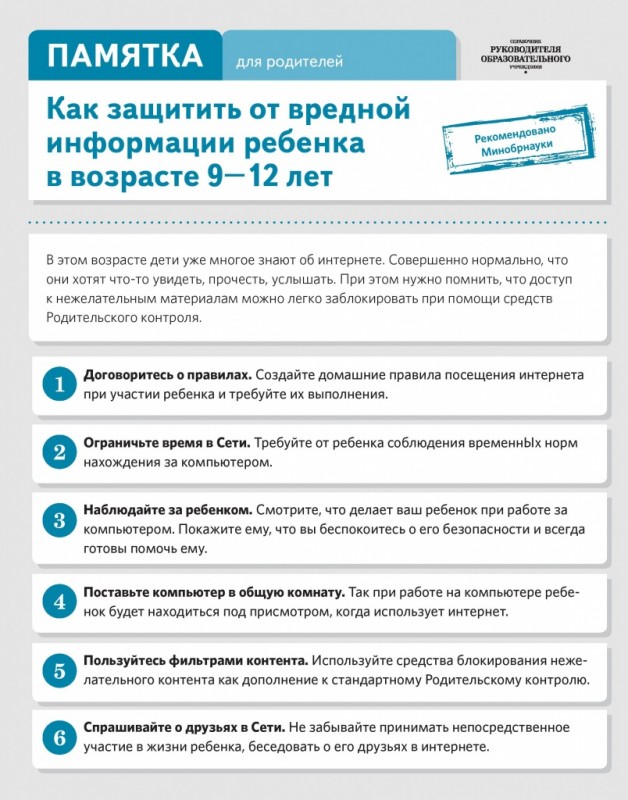 Как защитить от вредной информации ребенка в возрасте 9-12 лет -